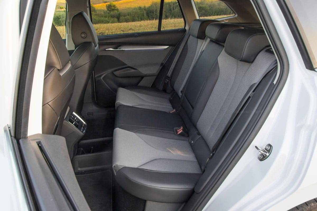 Unutrašnjost putničke kabine oličenje je novog stepena prostranosti koju ŠKODA nudi u svijetu električnih automobila. Već je odavno poznato da je češka marka kroz sve svoje dosadašnje modele neprikosnovena u ponudi prostora, a sa ENYAQ iV modelom taj se standard podigao slobodno možemo reći za dva stepenika. Ulaskom u putničku kabinu i sjedanjem za upravljač škodinog električara stiče se utisak da vozite znatno veći automobil – da ne kažemo kombi.