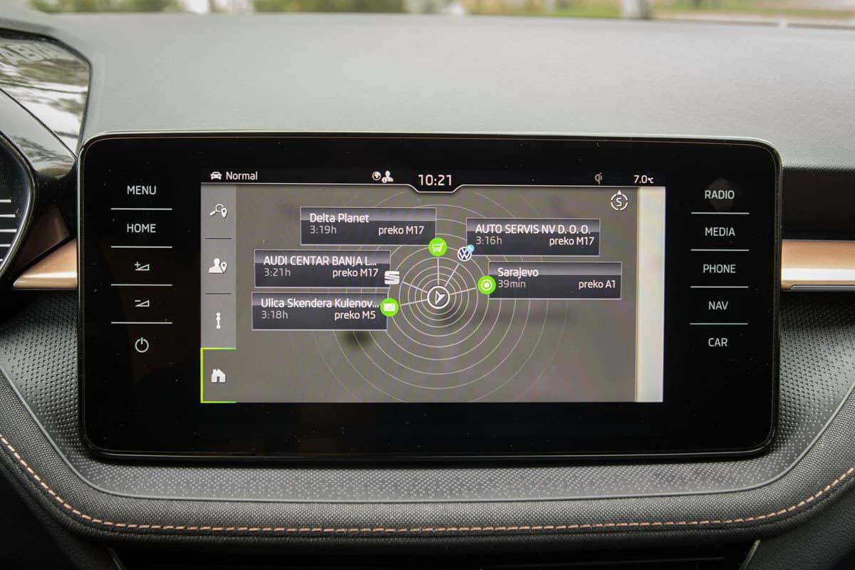 Testni model bio je opremljen sa digitalnom instrument tablom čija dijagonalna dužina ekrana iznosi 10,25 inča i vozač može birati između pet različitih opcija prikaza. To je po prvi put da se u ovom modelu (opciono) nalazi digitalna instrument tabla. Na sredini centralne konzole svoje mjesto zauzeo je samostojeći infotainment ekran sa dužinom od 9,2 inča. Preglednost oba ekrana je odlična, a na njima vozač ima sve potrebne informacije, a prolazak kroz različita okruženja, npr. putni računar, audio sistem, navigacija, telefonija itd. teče veoma brzo i glatko, bez softverskih nedostataka što je danas čest slučaj u automobilskoj industriji.