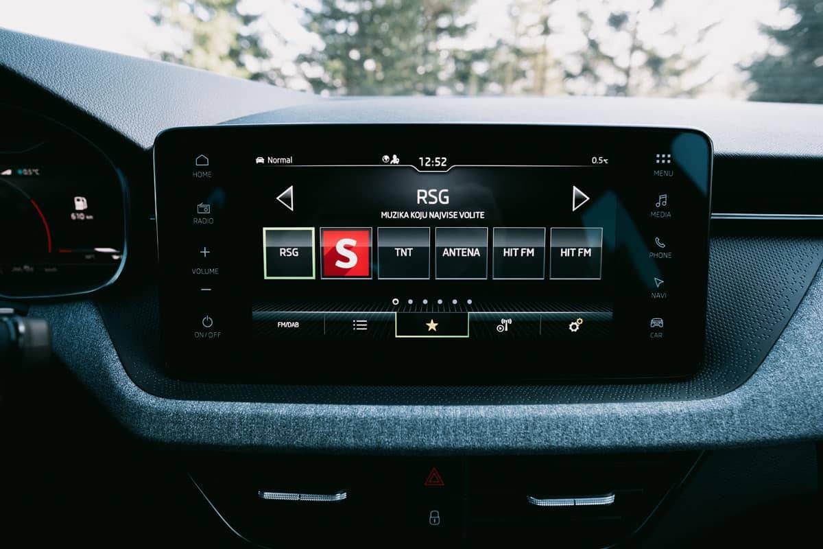 Testni model imao je navigacioni paket što uključuje glasovnu kontrolu, web radio, navigacioni 9,2 inčni uređaj Amundsen, osam zvučnika i SmartLink+. SmartLink+ tehnologija osigurava klasičnu žičanu kao i bežičnu vezu putem Apple CarPlay, Android Auto i MirrorLinka. Nova bežična SmartLink+ tehnologija temeljena na Bluetooth-u dostupna je za Apple CarPlay, Android Auto i MirrorLink. Svi putnici mogu pristupiti internetu putem dodatne Wi-Fi pristupne tačke. Na raspolaganju su dva USB-C priključka naprijed svaki sa 45 W snage te još dva nazad koji su opciona oprema. Ovi priključci omogućavaju brzo punjenje pametnih telefona, tableta, pa čak i laptop računara.