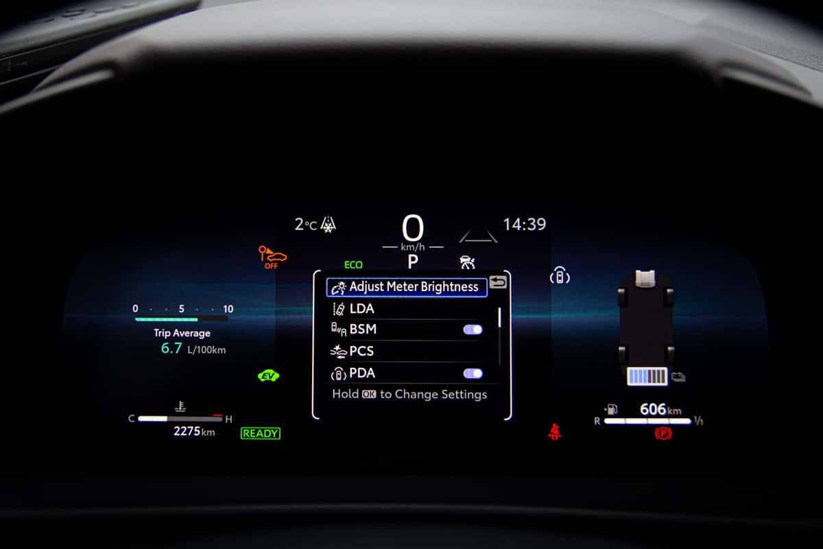 Digitalni ekran ispred vozača nudi prikaz velikog broja informacija koje po svom nahođenju požete postavljati na određena mjesta. Broj informacija i mogućnosti podešavanja njihovog prikaza je velik, a sama podešavanja su malo komplikovana baš zbgo velikog broja informacija i mogućnosti podešavanja. Ovaj segment mogao je imati malo bolju organizaciju, ali možda to nekome neće toliko smetati. Na to treba dodati da C-HR kao moderni automobil ima i veliki broj sistema pomoći u vožnji koji su stalno aktivni. Njihovo deaktiviranje moguće je samo preko upravljača i digitalne instrument table, a svakim novim startanjem automobila oni se reaktiviraju.