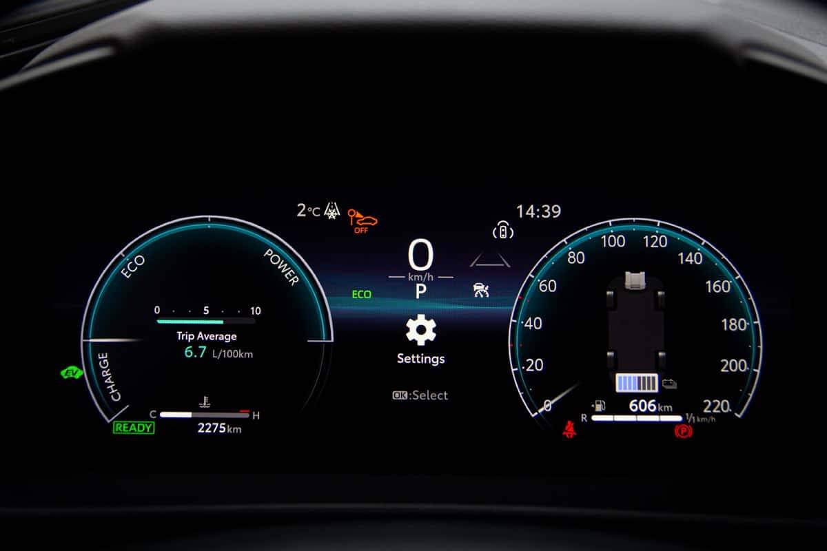 Testni model pokretao je hibridni pogonski sklop sa 1.8 litrenim atmosfercem koji isporučuje 98 KS pri 5.200 okr/min i 142 Nm okretnog momenta pri 3.600 okr, dok električni motor isporučuje 95 KS i 185 Nm okretnog momenta. U kombinovanom režimu dva motora izlazna snaga je 140 KS. Dio hibridnog sklopa je i već poznati e-CVT mjenjač. Vozaču su na raspolaganju četiri moda vožnje: Normal, Sport, Eco i Custom koji osjetno mijenjaju karakter automobila.