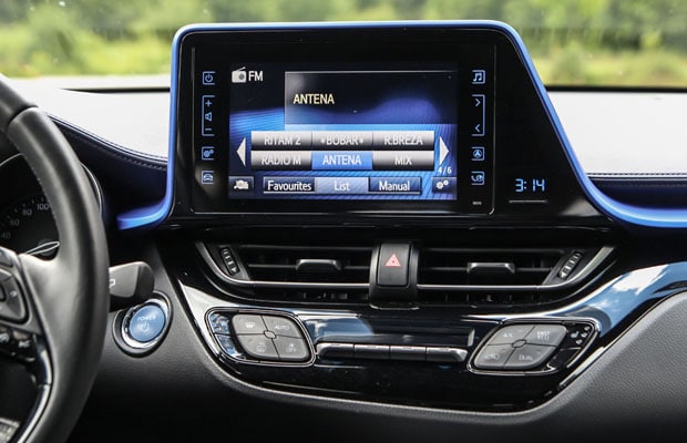 Centralna konzola originalno je dizajnirana na koju je postavljen veliki 8 inčni centralni ekran osjetljiv na dodir. Dizajnerski je vrlo blizak sa onim iz BMW modela, a to i ne čudi kad se zna da su Toyota i BMW partneri u razvoju novih pogonskih sklopova. No, Japanci su malo posudili i ideja u dizajniranju unutrašnjosti… Ekran nema mogućnosti preklapanja i promijene ugla, ali je pozicija odlična tako da nema odsjaja na ekranu tokom sunčanih dana.