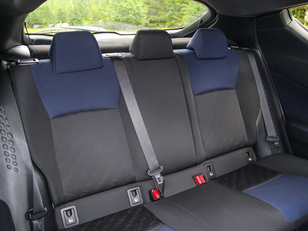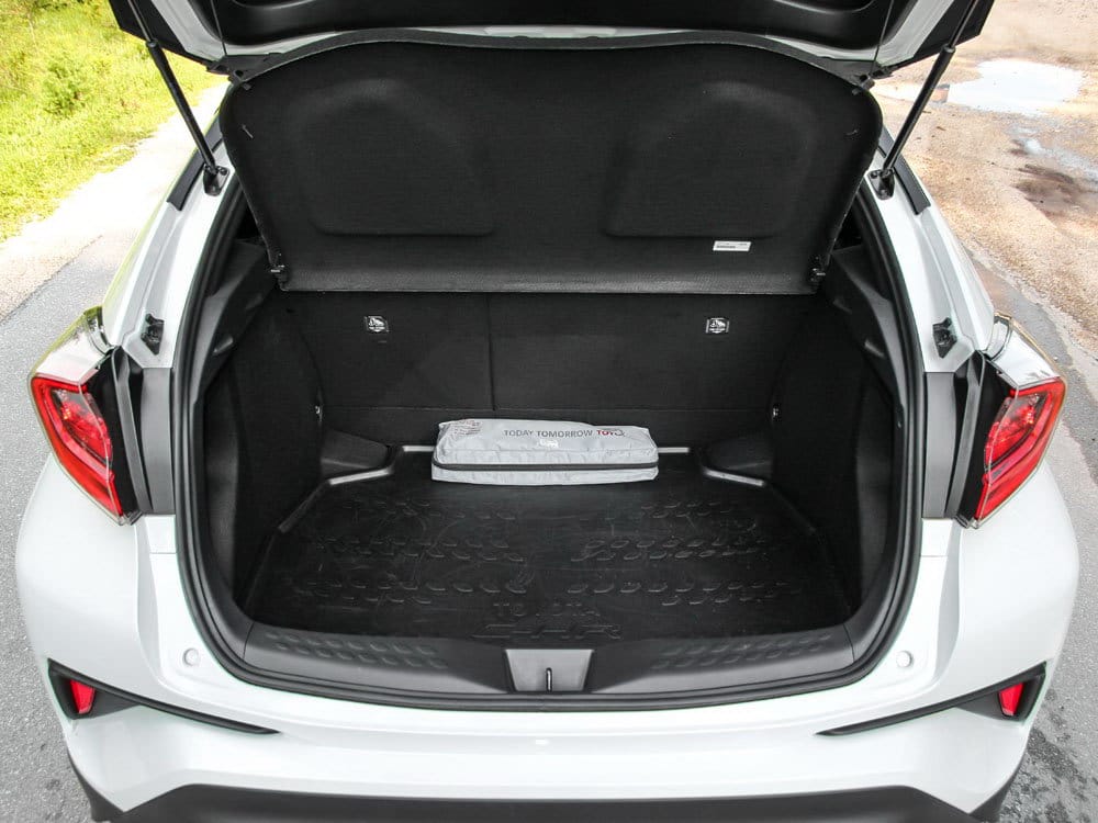 C-HR obiluje zanimljivim i efektnim rješenjima poput u C stubu skrivenih ručica za otvaranje zadnjih vrata ili bočnih zaštitnih plastika na pragovima i donjem dijelu vrata. Na usko dizajniranom zadnjem kraju tu je spojler koji je postavljen na poklopc prtljažnika, a koji je neizostavan dio na čistokrvnim sportskim automobilima. Cjelokupno gledajući C-HR ima vrlo upečatljiv sportski dizajn što će biti pravi mamac za mlađu populaciju.