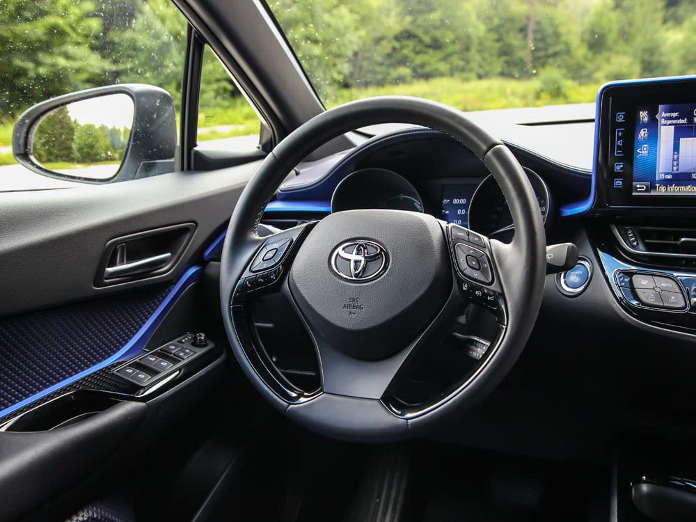 Idealna vozačka pozicija lahko se pronalazi, ali mali problem nekim vozačima može stvarati mala mogućnost izvlačenja upravljača po dubini. Testni model imao je multifunkcionalni, kožom obloženi upravljač koji dobro leži u rukama. Ostale komande su na dohvat ruke pa u samoj vožnji ne morate skretati veliku pažnju za njihovo korištenje. Materijali i finalna obrada na visokom su nivou, a ovisno o opremi, C-HR može ponuditi visok nivo luksuza.