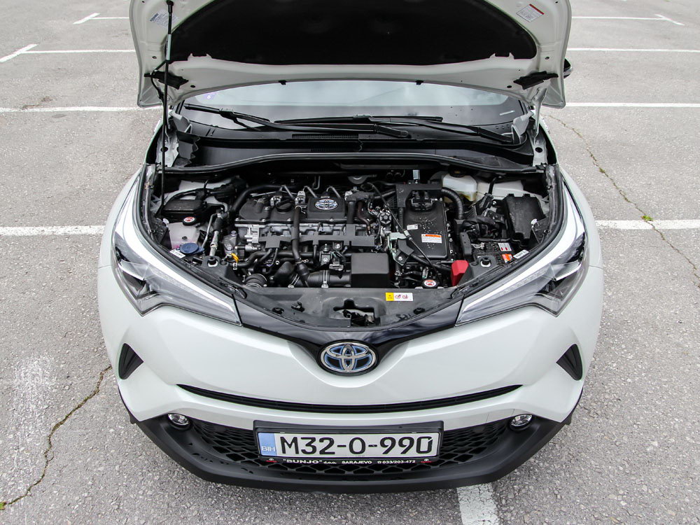 Testni C-HR model pokreće hibridni sklop kojeg čini 1.8 litreni benzinski atmosferac i elektromotor na prednjoj osovini čija ukupna snaga iznosi 122 KS. Pogonski sklop uparen je sa poznatim Toyotinim CVT mjenjačem.
