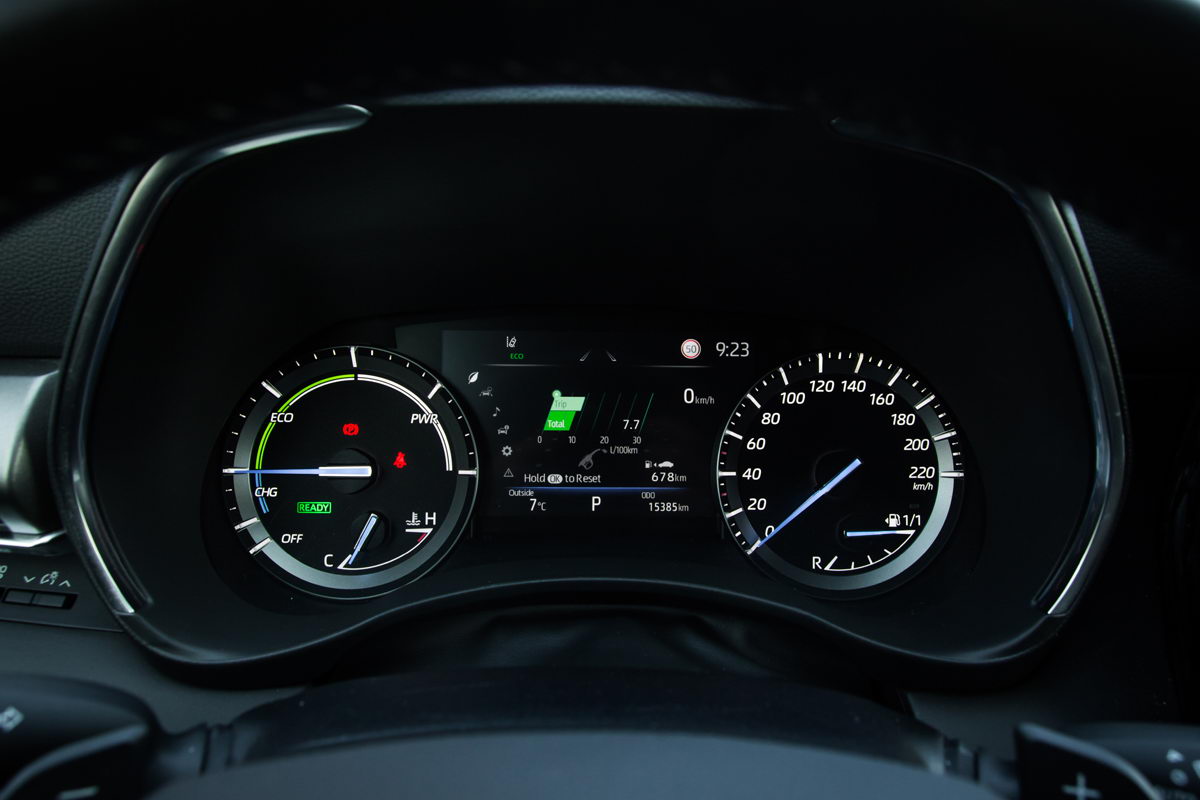 Hibridni pogonski sklop uparen je sa novim e-CVT mjenjačem kojeg Toyota već dugo razvija i usavršava kroz svoje generacije. Kod ovog modela nema “B” režima koji je predviđen za poboljšano prikupljanje električne energije, ali tu je “M” režim u kojem vi regulišete kako će hibridni sklop isporučivati snagu.
