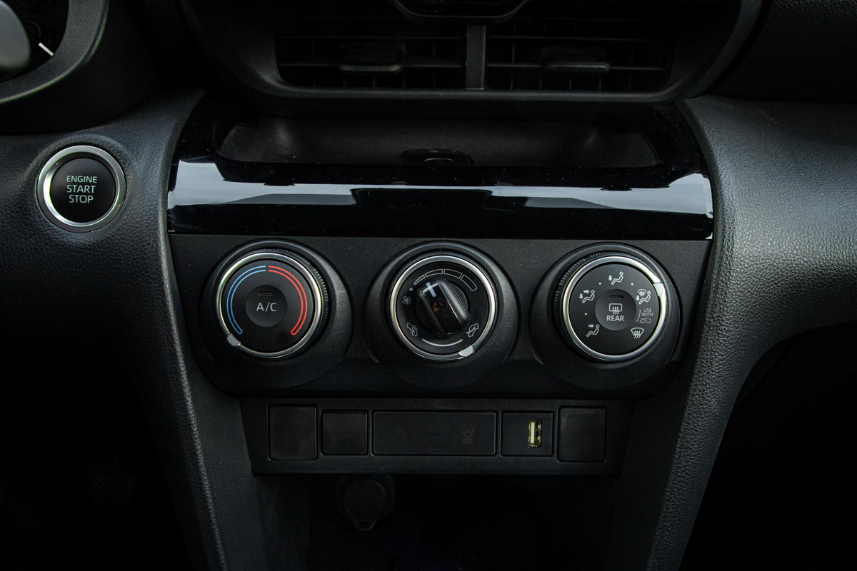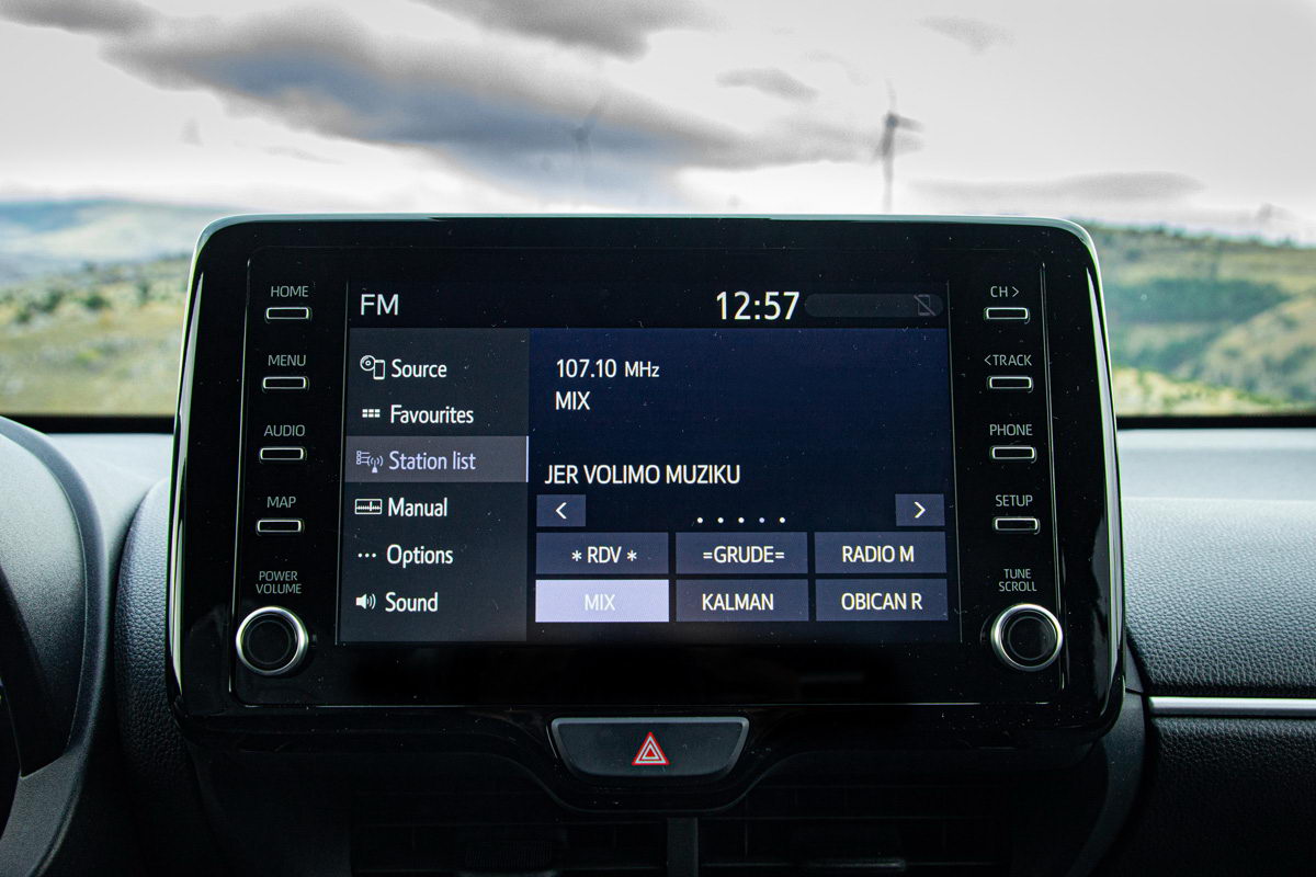 Ventilacionim sistemom u testnom modelu upravlja se putem fizičkih prekidača, što je još jedan od primjera da Toyota ne odbacuje dokazano dobra tradicionalna rješenja. Zasigurno, ovakvo rješenje nije moderno, ali je jednostavno za korištenje… U bogatijim paketima opreme dostupna je digitalna automatska klimatizacija koja također ima fizičke prekidače.