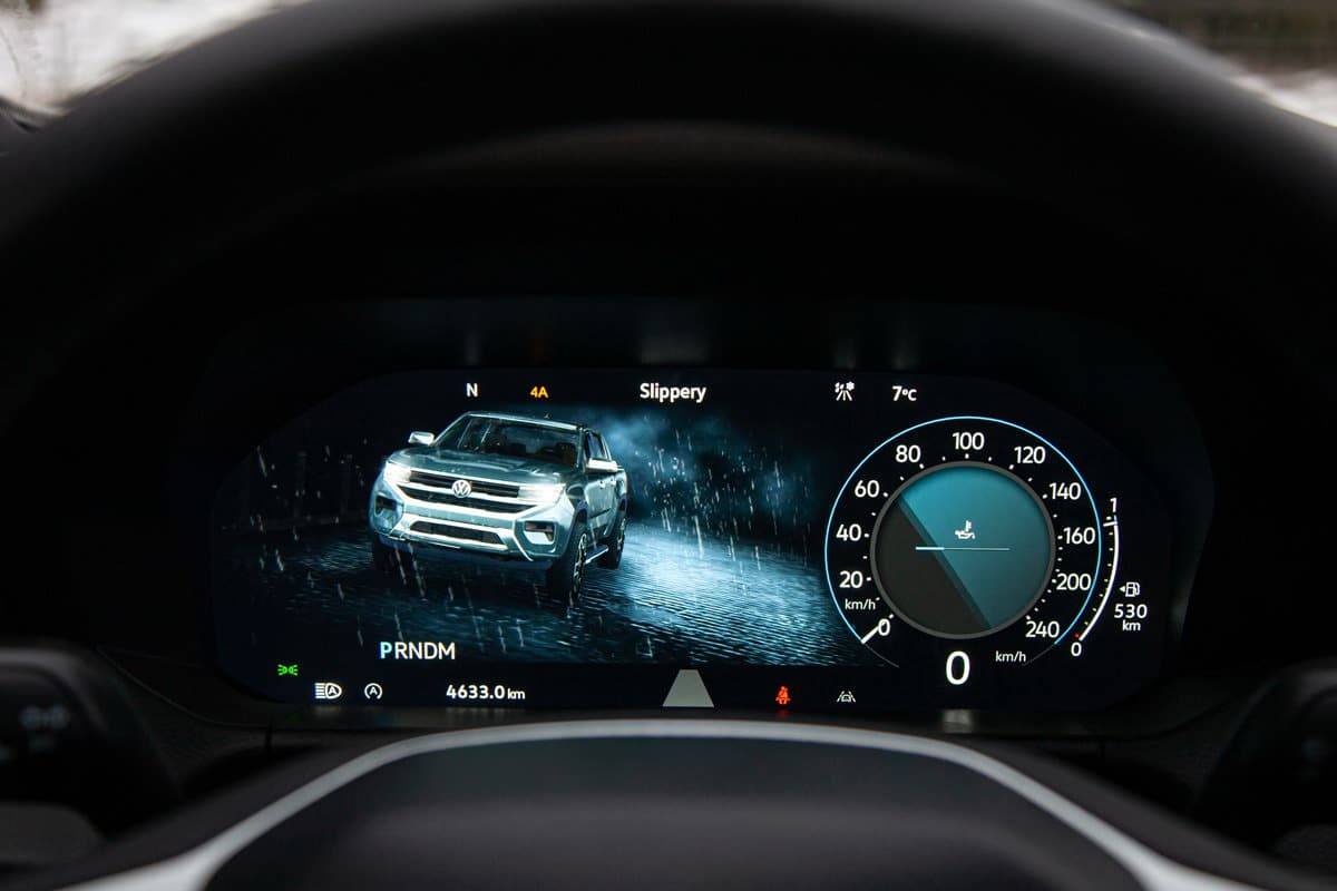 Centralnu poziciju na instrument tabli zauzeo je veliki 12 inčni ekran Infotainment sistema preko kojeg se upravlja svim bitnim sistemima, od klimatizacije, navigacije, audio uređaja, pa do brojnih podešavanja samog vozila. Grafičko okruženje vrlo je jednostavno, a sami rasporedi komandi su logčni pa je sve lako za korištenje. Međutim, obzirom da će Amarok biti često korišten kao radna mašina u teškim uslovima rada, pravi fizički prekidači bili bi bolje rješenje. No, čini se da je Volkswagen odlučio model Amarok više pomjeriti prema kupcima koji više cijene luksuz i tehnološku inovativnost.