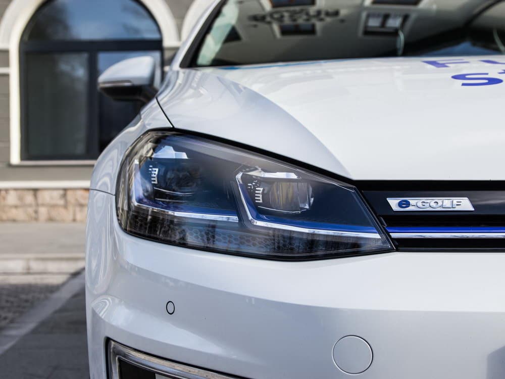 Na prednjoj stran automobila tu su velika LED svjetla za dnevnu vožnju u obliku velikog slova C. Tu je i drugačija maska motora koja je gotovo zatvorena, jer e-Golf nema toliku potrebu za hlađenjem. Maska ima minimalne otvore i zbog bolje aerodinamike koja igra veoma važnu ulogu u smanjenju otpora zraka što se odmah odražava na veću autonomiju.