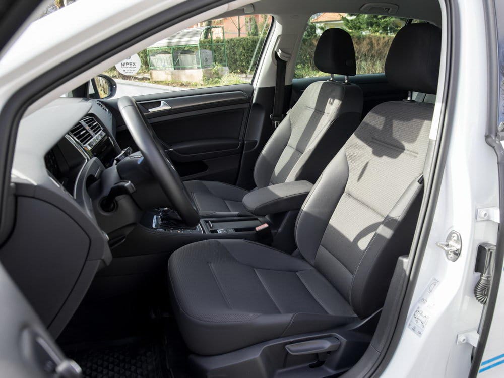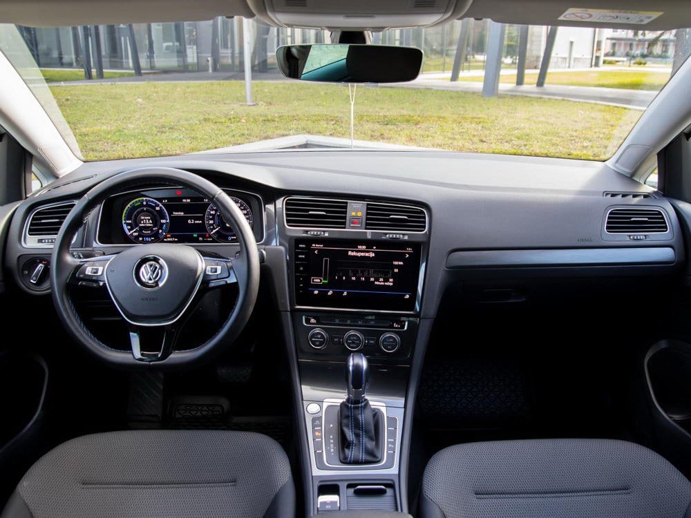 Unutrašnjost e-Golfa ostala je identična onoj kakva je i kod klasičnog modela. To znači da je prostranost ostala na istom nivou kao i kvalitet materijala. Ipak, ima nekoliko manjih detalja koji su jedinstveni za ovaj automobil, a to je tkanina na prednjim sjedištima, grafika potpuno digitalne instrument ploče te drugačiji prikaz podataka o vozilu.