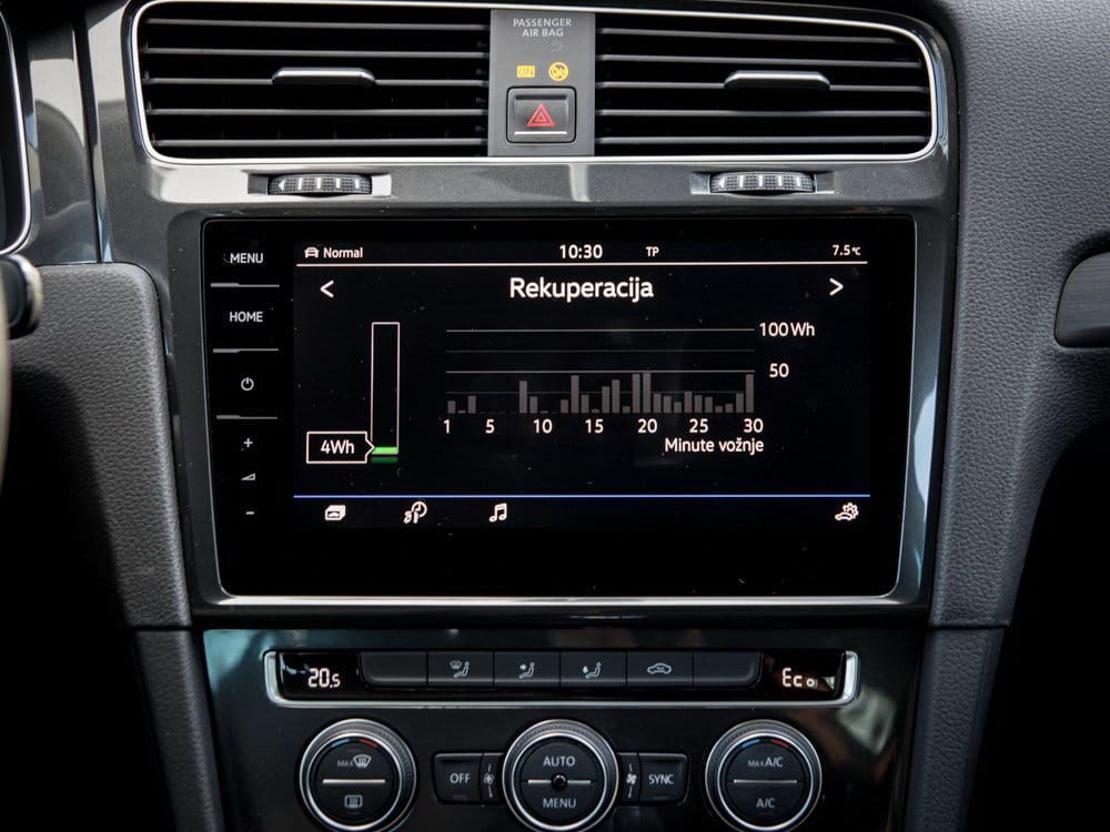 Najčešće pitanje koje se postavlja glasi: šta će se dogoditi ako se baterija potpuno isprazni? To se neće dogoditi bez prethodnog upozorenja. Sistem upozorenja kod e-Golfa unaprijed će upozoriti vozača i automatski će isključiti sve manje važne sisteme kako bi se uštedjela energija.