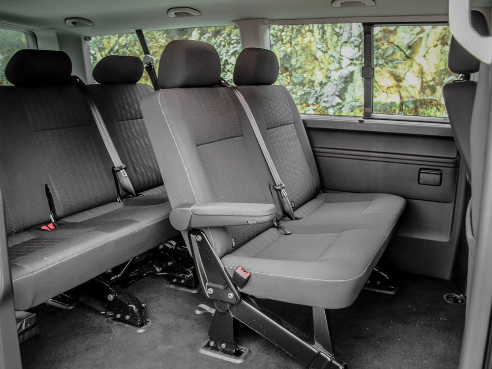 Testirani Caravelle model bio je opremljen sa Comfortline paketom opreme koji je imao konfiguraciju sjedišta 6 + 1. Konfiguracija sjedišta iza vozača i suvozača je tri sjedišta u zadnjem i dva u drugom redu kako bi ulazak na zadnju klupu bio olakšan. Iza zadnjeg reda sjedišta nalazi se tovarni/prtljažni prostor koji je dovoljan za prtljag svih putnika i prilikom odlaska na duga putovanja.