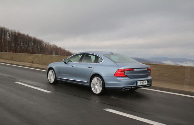 Naravno, osjećaj u kabini nije kao kad je vozilo kompletno opremljeno zračnim ogibljenjem ali se može reći da predstavlja dobar odnos između upravljivosti u sportskom stilu vožnje i komfora. „S90“ je izuzetno stabilan i pri velikim putnim brzinama, a u krivinama mu se ne može ništa zamjeriti, što zbog oslanjanja, što zbog pneumatika dimenzija 255/35 R 20, što zbog pogona na sva četiri točka.