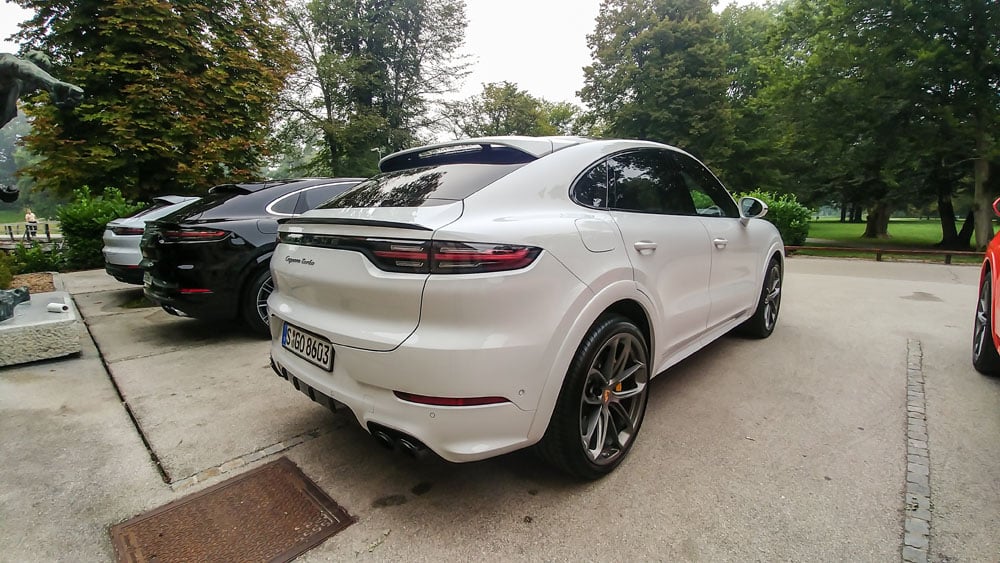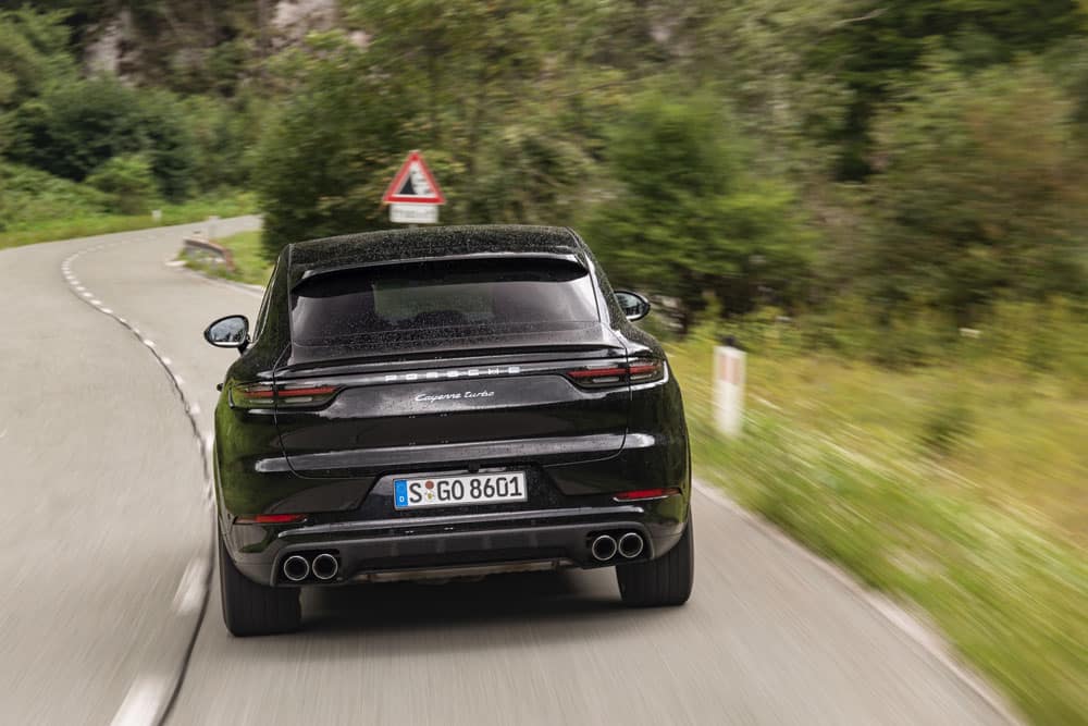 Top ponude čini Cayenne Turbo Coupé kojeg pokreće 4.0-litarski V8 motor sa snagom od 404 kW/550 KS i 770 Nm okretnog momenta što je dovoljno za ubrzanje od 0 do 100 km/h za 3,9 sekundi i maksimalnu brzinu od 286 km/h. Ovaj model standardno je opremljen sa Sport Chrono paketom koji donosi u 20 sekundi još dodatne snage pa do 100-tke leti za 3,7 sekundi.