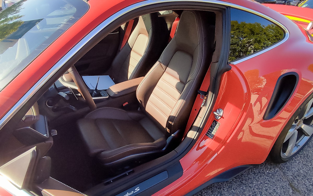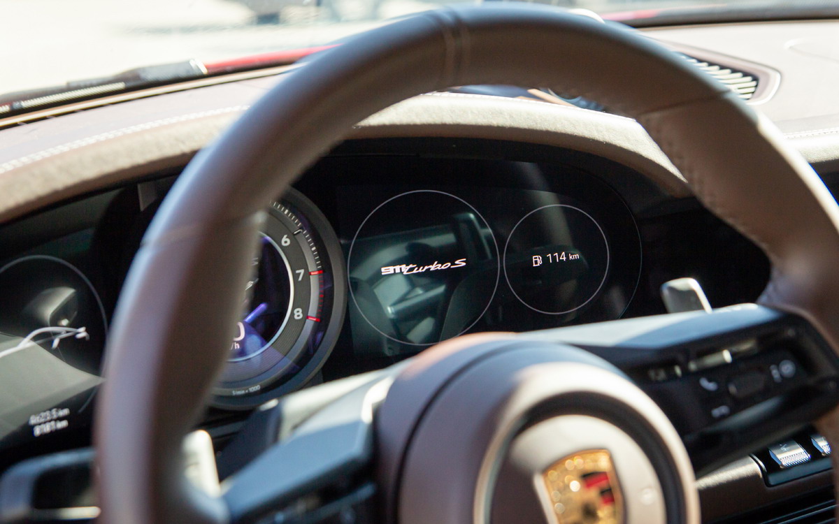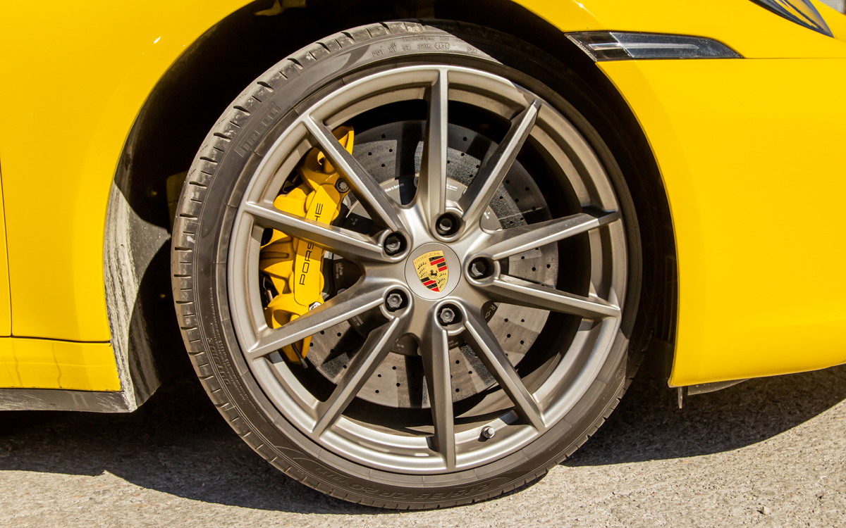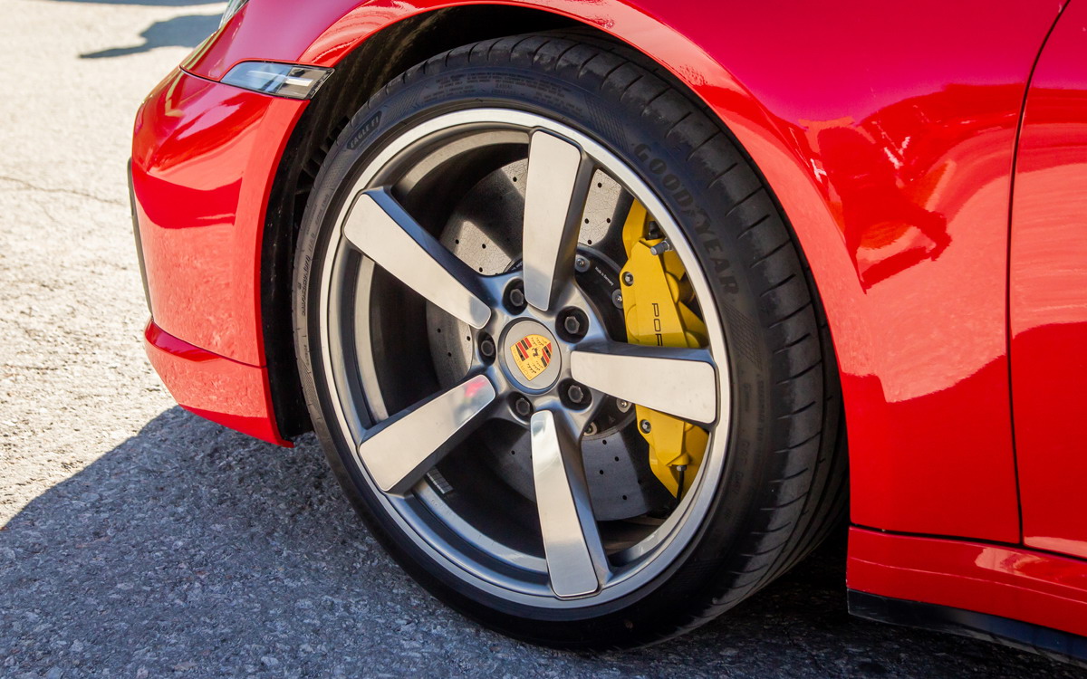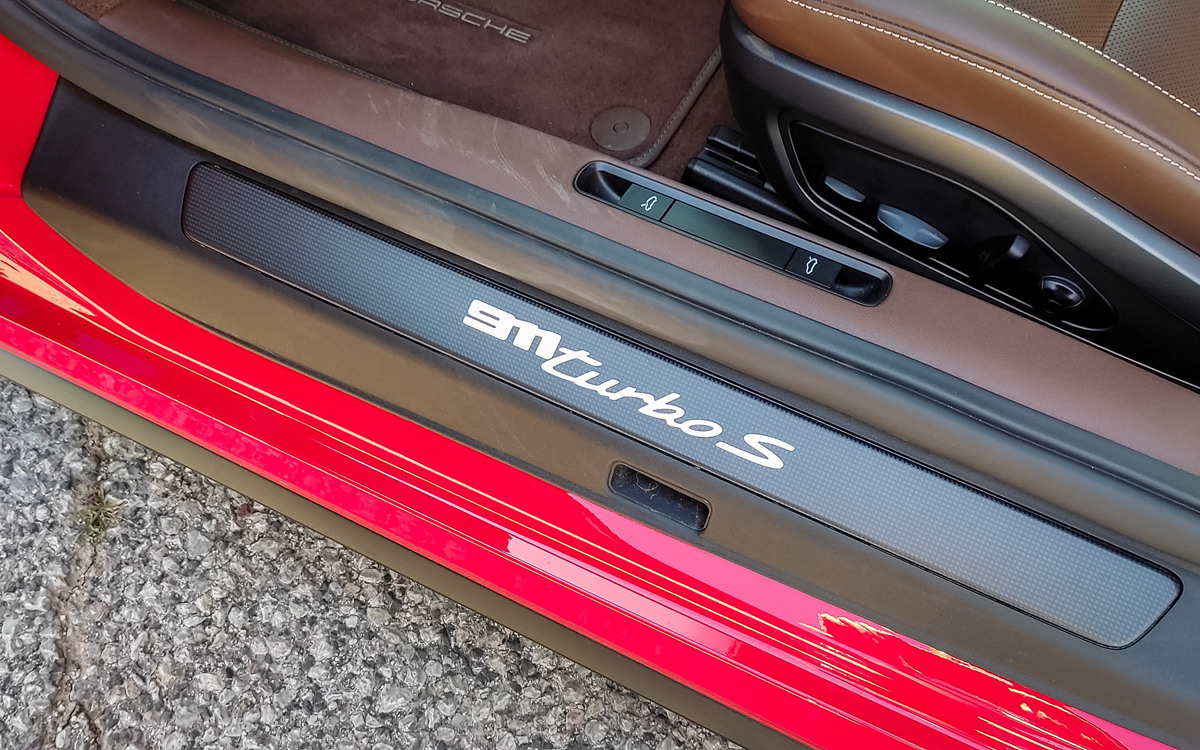 Automobil ima prednja adaptivna krilca koja poboljšavaju aerodinamiku, a veliki zadnji spojler stvara potisak na zadnje točkove kako bi se osigurao neophodni downforce pri velikim brzinama. Novi 911 Turbo S ima različite veličine točkova, naprijed su 20-inčni točkovi s gumama veličine 255/35, a nazad su 21-inčni točkovi s gumama veličine 315/30.