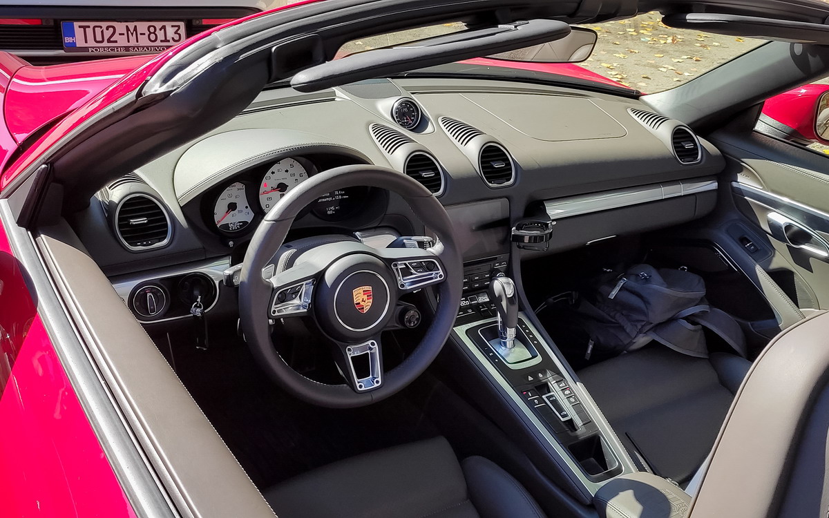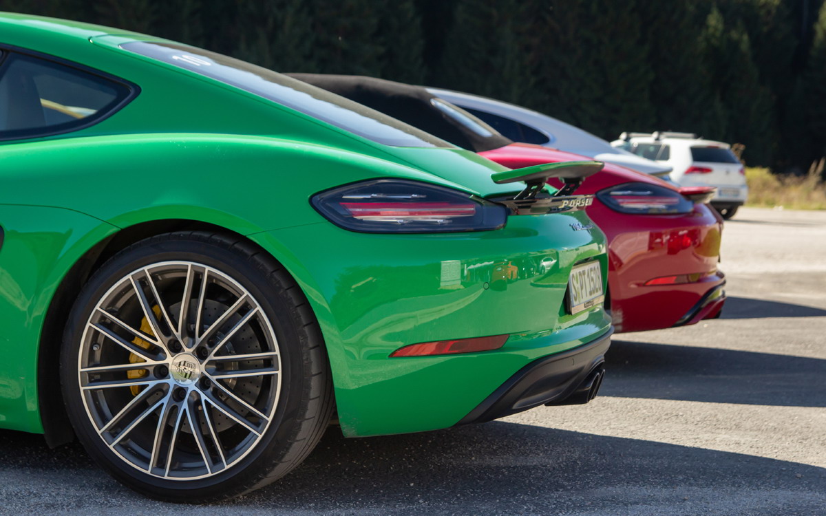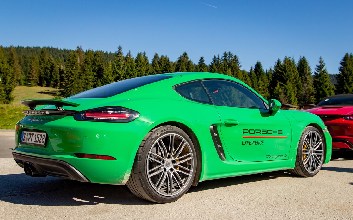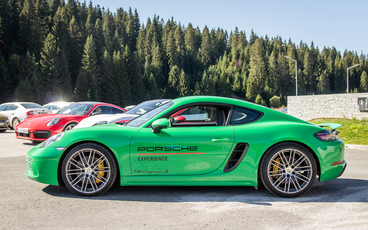 PORSCHE Cayman 718 je PORSCHE-ov ulazni model, a njegov derivat je cabrio verzija Boxter 718. Osnovni model pokreće 2.0 litarski motor s 300 KS, međutim mi smo na raspolaganju imali snažniju verziju s oznakom “S” koju pokreće 2.5 litarski motor sa 350 KS. U kombinaciji sa standardnim automatskim PDK mjenjačem Cayman ide od 0 do 100 kmh/ za 4,9 sekundi i postiže maksimalnih 285 km/h.