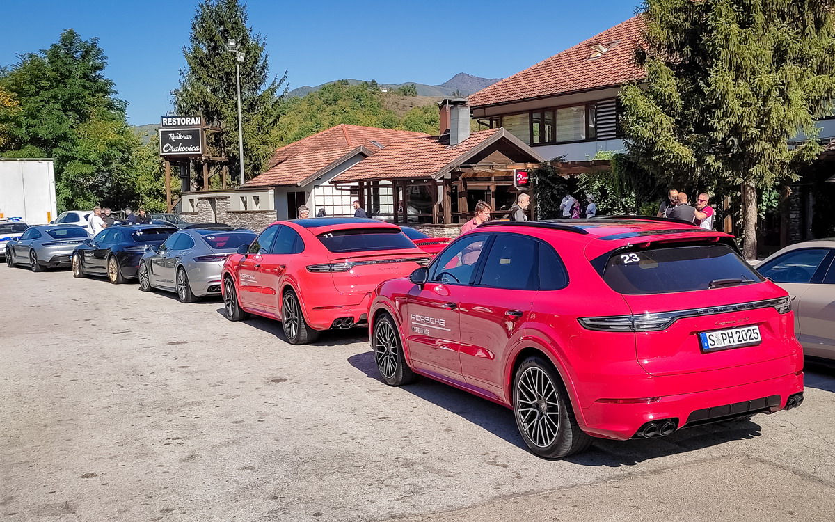 Odabrana ruta vjerovatno je i najbolja moguća u bližoj okolini Sarajeva, ako u obzir uzmemo samu putnu infrastrukturu i konfiguraciju ceste. Nažalost, na ovakvim javnim cestama, na siguran način, možete iskusiti samo djelić onoga što pružaju PORSCHE automobili. Vožnja u koloni kojoj je osiguran nesmetan prolaz uz policijsku pratnju ipak daje mogućnost da lagodnije “malo zaplešete” po cesti uz budno oko PORSCHE instruktora.