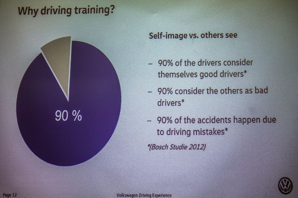 Veliki broj vozača nije upoznat sa realnim opasnostima koje vladaju u svakodnevnoj vožnji, posebno na mokrim, zaleđenim i snijegom prekrivenim putevima. U formiranju trenutne slike stanja na putu vozač 85 % informacija dobija preko očiju, a kako se automobil ponaša dobija sa svog tijela. Upravo zbog toga vrlo je važna pozicija sjedenja kao i tačka gledanja.