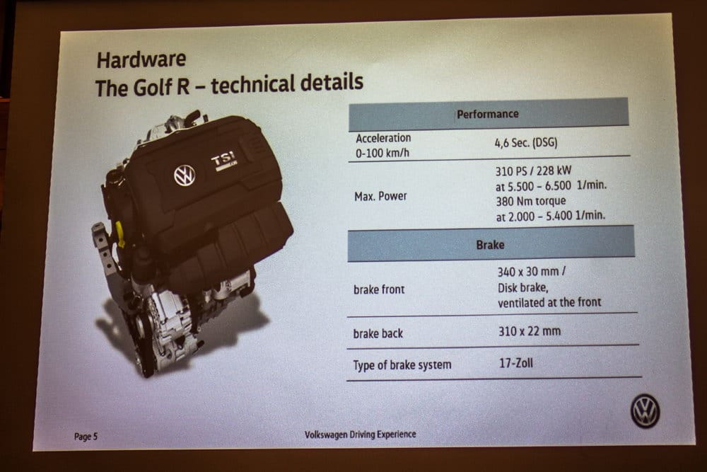 Snagu sa kojom raspolaže novi Golf R ovog puta nije bilo moguće u potpunosti iskoristiti, ali to i nije bio cilj ovog treninga, već ovladati naprednim tehnikama vožnje koje vozaču mogu pomoći da se izvuče iz kritičnih situacija u koje može upasti tokom svakodnevne vožnje. Pored doprinosa većoj sigurnosti u vožnji ova znanja otvaraju i mogućnost povremene zabave koju sebi i svojim saputnicima možete priuštiti kada vam se pruži prilika, a da pri tome ne ugrozite druge.