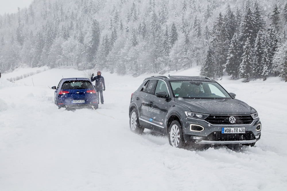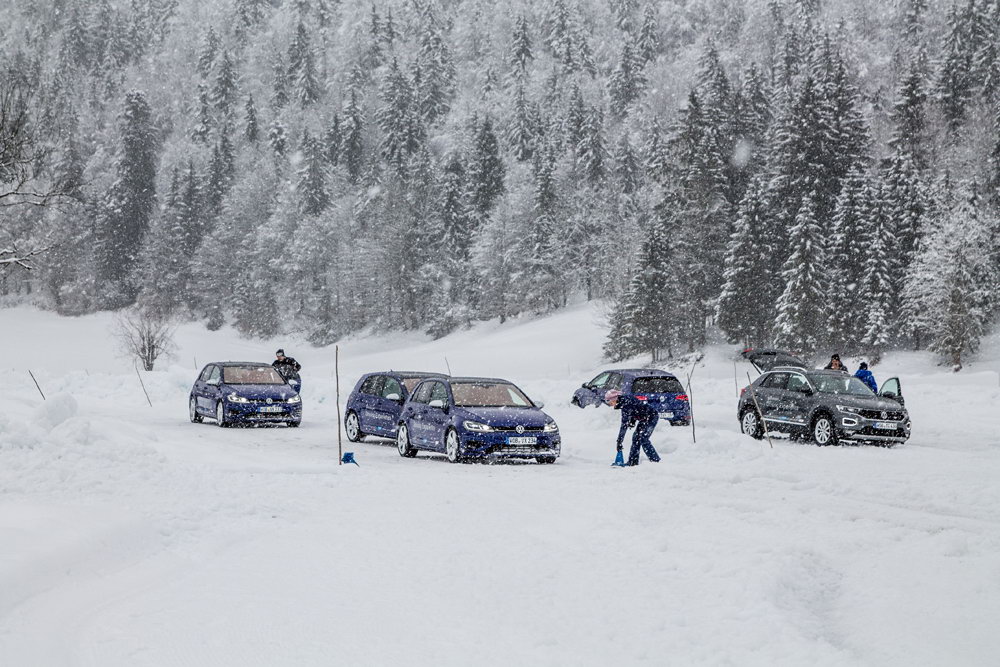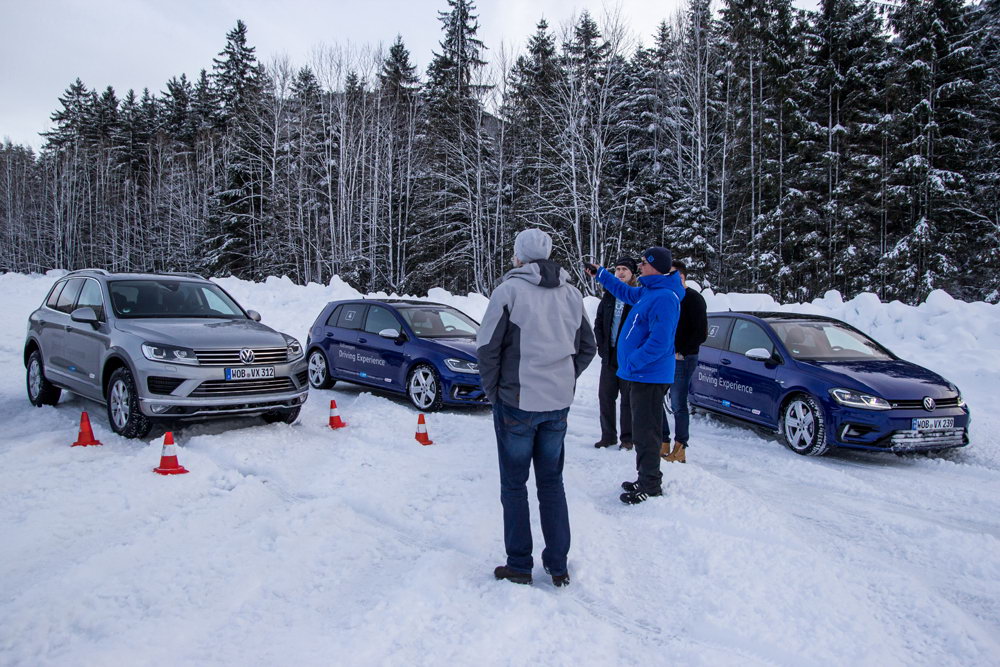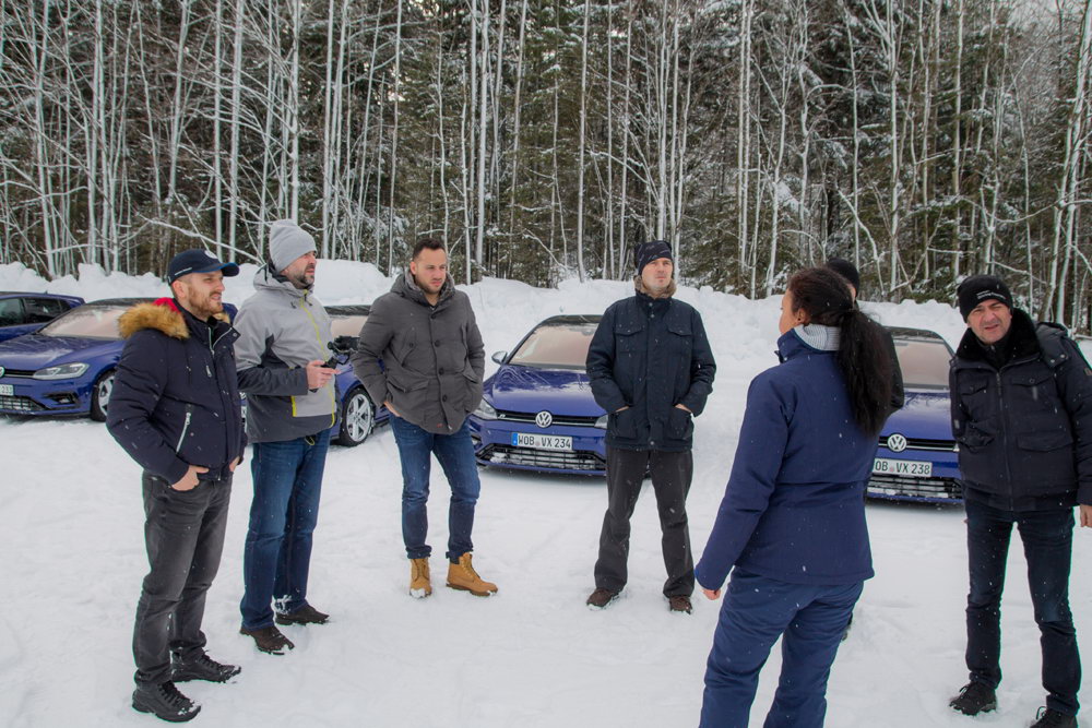 Za ovaj trening Volkswagen je pripremio tri različite staze na kojim su stvoreni svi realni zimski uslovi u kojim se možete naći. Duboki snijeg, zaleđeni put, zaleđeni put prikriven snijegom, zaleđeni put sa usponom, bili su naši prvi vozački ispiti znanja i vještina. U strogo kontrolisanim uslovima, profesionalni trener vožnje prvo je svojim primjerom upoznavao učesnike sa predstojećim zadatkom, a nakon toga je savjetima pomagao kako da na pravi način učesnici savladaju izazov koji je stajao ispred njih.