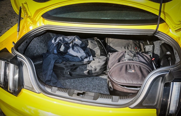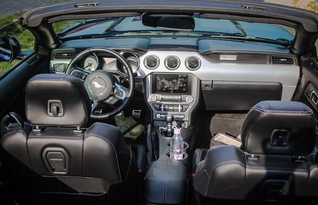 Osnovna stvar kod “masl” automobila koji dolaze iz Amerike je da koštaju i više nego upola manje od evropskih modela sa sličnom snagom. Zbog toga smo prilikom upoznavanja sa automobilom namjerno tražili mjesta na kojima je fabrika uštedjela. Na prvi pogled, sve je kako treba. Tu su aluminijumske pedale i lajsne na komandnoj tabli, metalni prekidači na centralnoj konzoli, odlična kožom presvučena sportska sjedišta koje potpisuje Recaro, infotejnment sistem druge generacije sa devet zvučnika, pažljivo dizajniran volan. Zaista ubjedljivo.