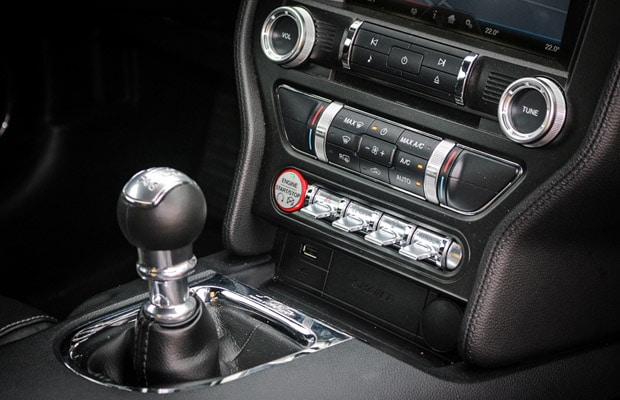 Mjenjač zahtjeva nešto snage, ali se koristi iz zgloba i sportski je precizan i brz. Pravo je zadovoljstvo mjenjati brzine čak i u sporom gradskom saobraćaju jer je odnos kvačila, načina na koji motor prima i gubi obrtaje i ručice mjenjača među najboljima. Mustang nije lagan auto, ima preko 1,7 tona. Ipak, sa 54% mase na prednjim točkovima, balans mu nije loš. Upravo zbog toga i naravno zbog novog zadnjeg ogibljenja i nove krute šasije, upravljanje je vrlo uzbudljivo i prije svega bezbjedno. Fabrika navodi da kupe može da u krivini postigne bočnu silu od 0,97g.