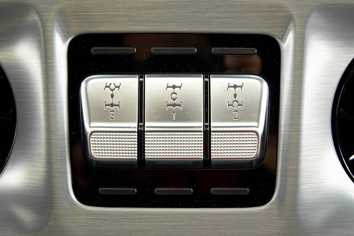 Da je Mercedes G klasa i dalje pravi terenac potvrđuje činjenica da ima blokadu čak tri diferencijala; prednjeg, centralnog i zadnjeg diferencijala. U praksi to znači da ćete moći blokadom diferencijala rasporedti tačno jednu četvrtinu ukupne snage po svakom točku. Ono što je još važnije je da vozač sam putem prekidača bira koji će diferencijal da blokira, a ne da taj posao automatski radi elektronika automobila što može biti problem u teškim offroad situacijama.