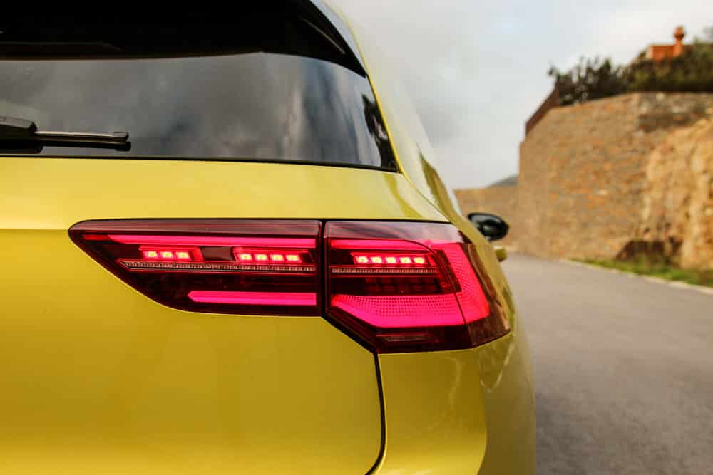Idealan omjer karakteristika Greenhouse (područje krova i ostakljenje) i Body (donje područje od linije prozora) novom Golfu osigurava impresivan nastup, a duboko izvedena linija krova autentičan sportski karakter. Jednako je markantna i snažna ramena linija i vrlo jasno izraženi zadnji dio vozila. Karizmatični prednji dio odlikuje naglašeno uska rešetka hladnjaka koji je podrezan oštrim linijama, jedna od njih se proteže i kroz bočnu siluetu automobila u visini ručica vrata. Novi dizajn svjetala postaje dominantan i nezamjenjiv stilski element Golf 8. Ona dolaze u LED tehnologiji u svim verzijama te su zamijenila sve vrste konvencionalne tehnologije svjetala.