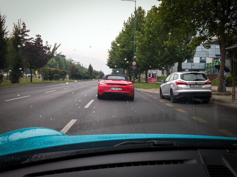 Boxster 718 S Cabrio bio je naredni model koji smo vozili. Radi se o potpuno novom automobilu koji je ne tako davno predstavljen na globalnom nivou. Pokreće ga 2,5-litreni, 4-cilindarski turbo motor koji razvija 350 KS i 420 Nm okretnog momenta. Motor je centralno postavljen, iza leđa vozača i suvozača, a Porsche je obezbjedio za ovaj model da ima raspodjelu mase na prednju i zadnju osovinu u odnosu 50-50%. To mu omogućava odlične manevarske sposobnosti, pa uz potentni motor koji je u testnom modelu bio uparen sa automatskim PDK mjenjačem zabava na krivudavim cestama neće izostati.