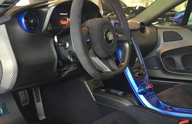 Sa ovim estetskim detaljima ovaj McLaren P1 ima jedinstven vanjski izgled. Putnička kabina također je personalizirana koju karakteriše mnoštvo komponenti od presvučenih alcantarom, dok su druge izrađene ugljičnih vlakana. Centralni greben kao i ventilacioni otvori obojeni su svijetlo plavu boju, dok je centralna konzola ostala u izvornoj karbon izvedbi.
