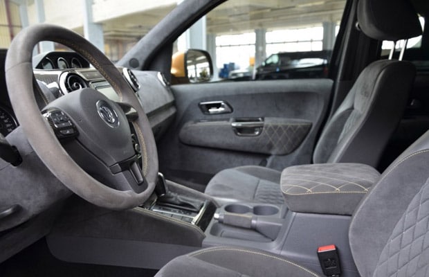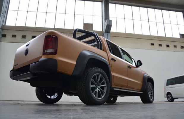 Robusni eksterijer krasi prerađeni VW Amarok koji dolazi u boji pustinjskog pijeska sa crnim detaljima karoserije, proširenim blatobranima, novim 20 inčnim BBS aluminijumskim felgama na koje su postavljene Cooper off-road gume. Volkswagenov Pick-up dobio je bočne pragove, bull bar i zatamnjene oznake.