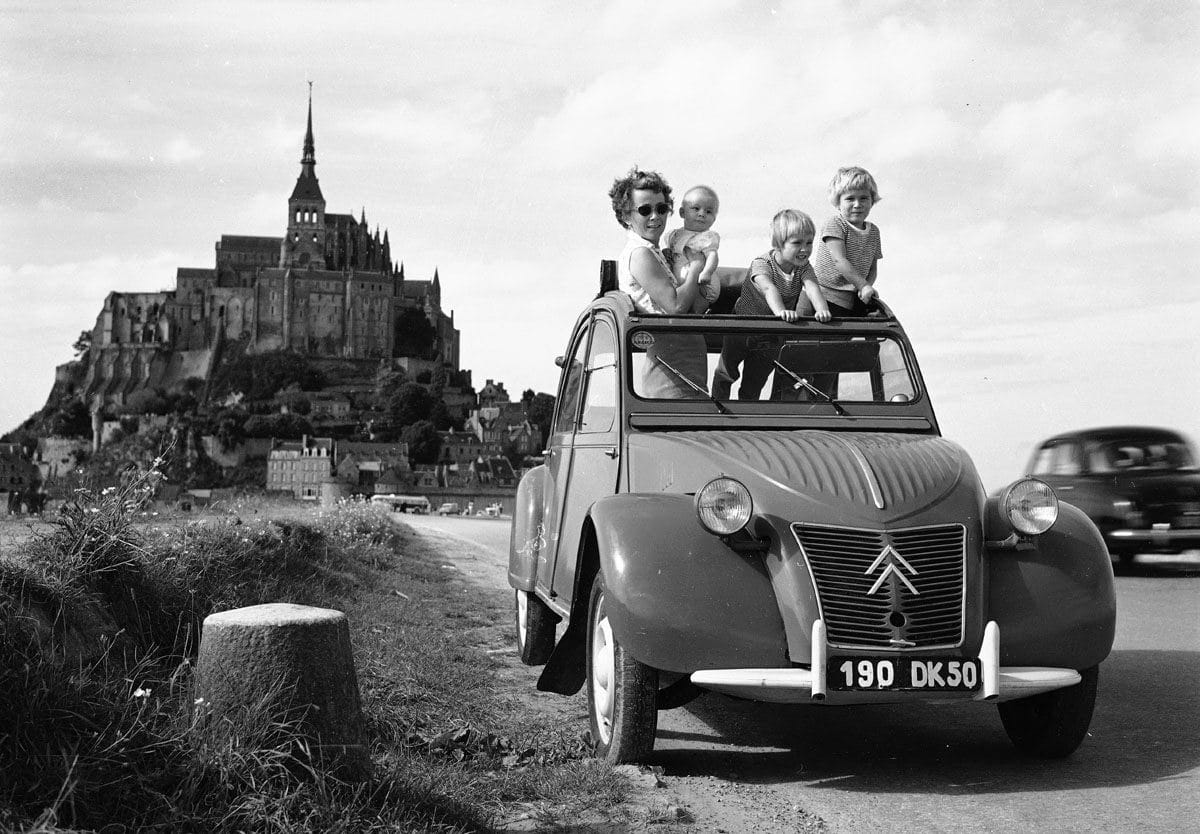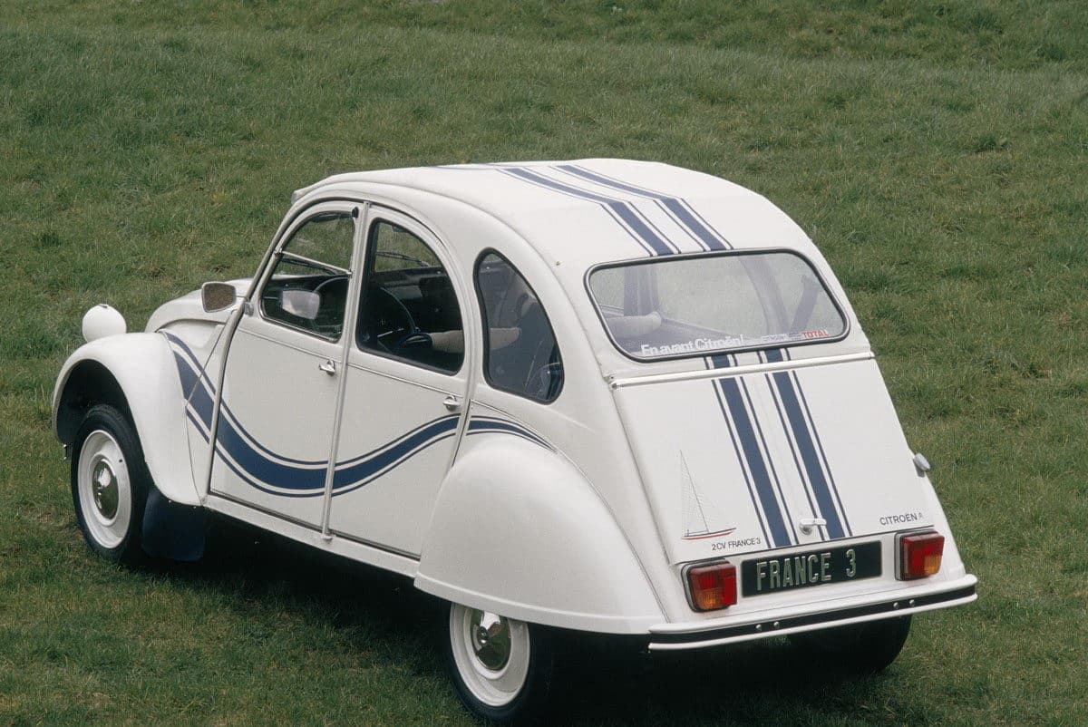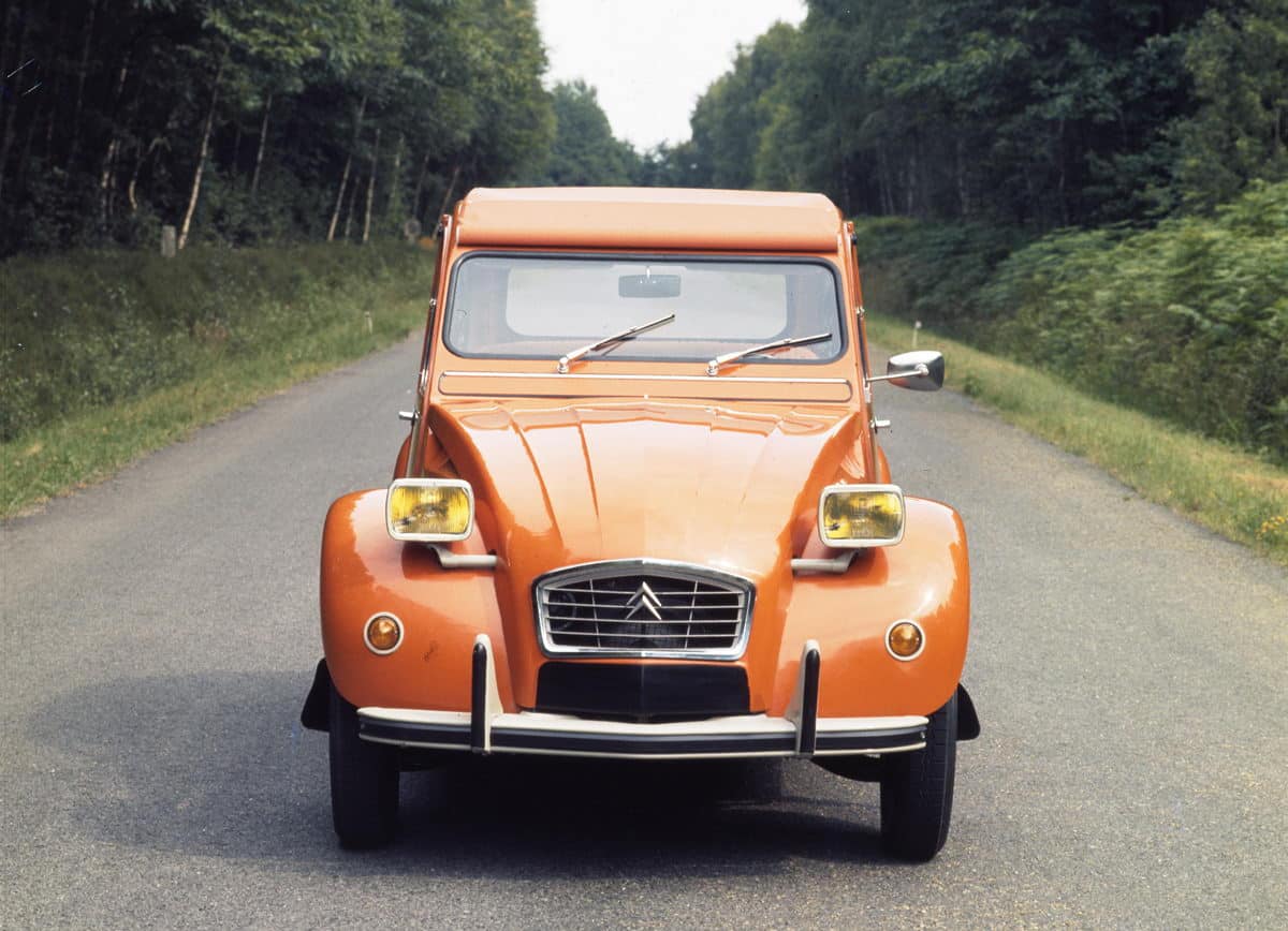 Njegova proizvodnja započela je u julu 1949. 2CV je bio mali automobil s ležećim motorom od dva cilindra i zračnim hlađenjem, 375 cm3 zapremine i 9 konjskih snaga, koji je mogao postići maksimalnu brzinu od 50 km/h. Ovim modelom Citroën je napravio revoluciju u automobilskoj industriji nudeći ekonomično i svestrano vozilo.