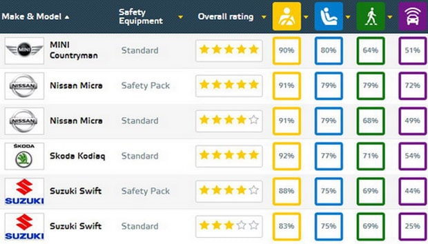 2017, Crash test, euroncap, Mini Countryman, nissan micra, Škoda Kodiaq, Suzuki Swift, vijesti