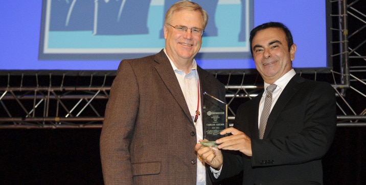 Žiri je g. Ghosna, među ostalim, izabrao zbog upravljanja Nissanom tokom oporavka započetog 1999. i zagovaranja vozila nulte emisije.