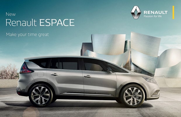 Paralelno sa lansiranjem novog Espacea, Renault je pokrenuo novi korporativni slogan ”RENAULT – Passion for life” (Strast za životom). Ovaj potpis ilustruje svježi pristup u dizajniranju automobila pokrenut 2012. godine, a takođe potvrđuje Renaultovo obećanje i vjeru u proizvodnju kvalitetnih i ujedno atraktivnih vozila koja korisnicima kroz niz inovacija čine svakodnevni život lakšim.