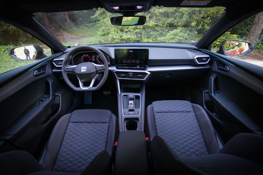 Unutrašnjost potpuno novog modela SEAT Leon vrhunac je funkcionalnosti, minimalizma i elegancije. Njegova elegantna, no svejedno široka instrumentna ploča s mekanom površinom posreduje dojam lakoće i određen stupanj “mogućnosti lebdenja”. Sve je u putničkom prostoru dizajnirano tako da bude ergonomski precizno, čime se komfor u unutrašnjosti povećava za sve putnike. Bez obzira na to sjedite li na vozačevu sjedalu ili kao putnik na stražnjim sjedalima.