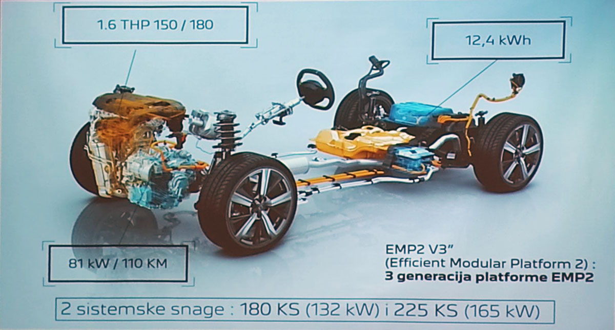Osim standardnih pogonskih sklopova u ponudi su dvije hibridne PHEV verzije. Obje verzije kombinuju 1.6 litreni turbo benzinski i električni motor, a u konačnici isporučuju 180 ili 225 KS, a okretni moment kod obje verzije iznosi 360 Nm. Oba modela isporučuju se isključivo sa 8-stepenim automatskim mjenjačem. Kapacitet baterije od 12,4 kWh prema WLTP normama osigurat će autonomiju čisto na električni pogon do 60 kilometara bez pomoći motora s unutrašnjim sagorijevanjem.