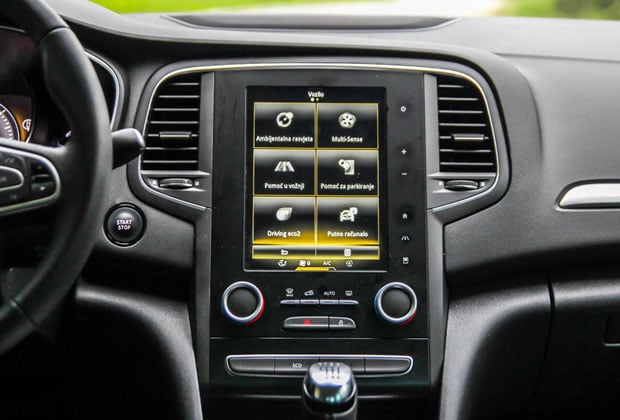 Estetski lijepo izgleda, ali praktičnost nije jačana strana jer tipkanje po ekranu osjetljivom na dodir traži skretanje pogleda što nije preporučljivo u vožnji. Korištenje bi bilo malo lakše da je ekran blago okrenut prema vozaču jer pri jakom suncu svjetlost pravi dodatni problem.