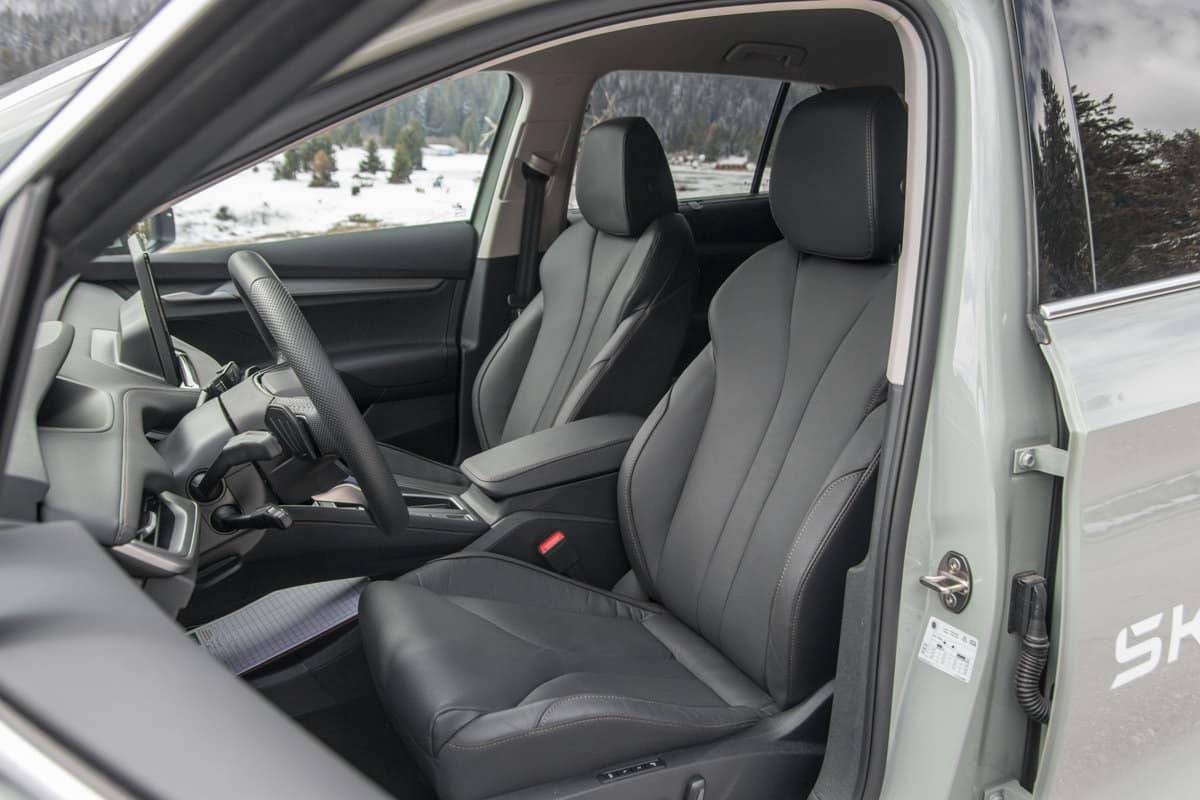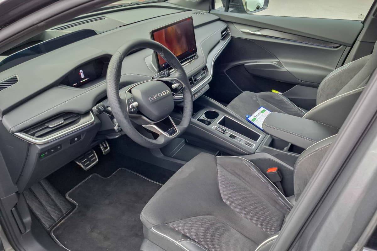 Unutrašnjost putničke kabine modela Enyaqa poboljšana je u novoj verziji. Sjedišta su izrađena od ekoloških materijala visoke klase, dok detalji od hroma i dekorativni umetci daju premium izgled. Novi 14-inčni infotainment ekran, još intuitivniji i responzivniji, dominira centralnom konzolom, a digitalna instrument tabla i head-up ekran nude obilje informacija u realnom vremenu.