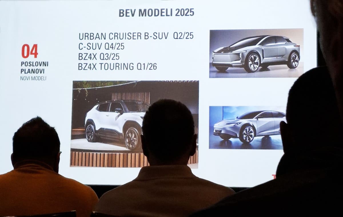 Toyota je najavila i veliki broj novih potpuno električnih modela, pa tako potpuno novi model B-SUV segmenta pod imenom Urban Cruiser stiže već u drugom kvartalu, i naravno, sa prethodnikom osim imena nema ništa zajedničko. Električni SUV iz C segmenta Toyota planira predstaviti u četvrtom kvartalu ove godine, dok novi BZ4X stiže u trećem, a njegova Touring verzija u prvom kvartalu 2026. godine.