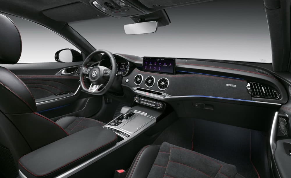 Zavisno od tržišta Stinger će od sada opcionalno nuditi novi 10,25-inčni zaslon na dodir. Bluetooth multi-povezivost korisnicima omogućava povezivost dva uređaja istovremeno – jednog za handsfree telefoniranje i upotrebu multimedije, a drugog samo za upotrebu medija. Napredni, fleksibilan i djeljiv zaslon korisnicima omogućava istovremenu kontrolu ili praćenje različitih funkcija vozila. Sistem standardno omogućava upotrebu platformi Apple CarPlay i Android Auto, s glasovnim upravljanjem većine funkcija, kao što su npr. grijanje i hlađenje, audio uređaj i navigacija.